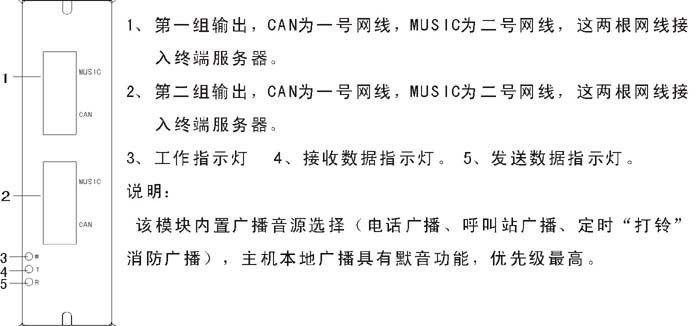 该模块内置广播音源选择(电话广播、呼叫站广播、定时“打铃”消防广播)