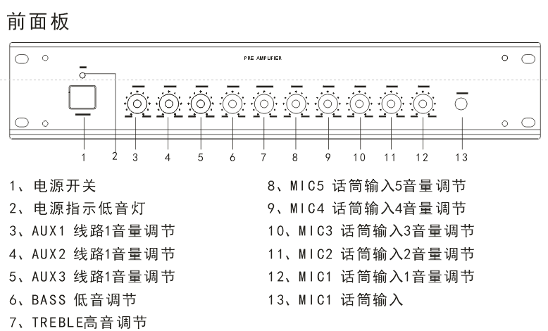 3、自动默音,有强切和优先功能,话筒1(MIC1)一级优先